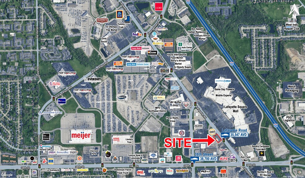 - 3,200 SF Drive-Thru Building - Former restaurant - parking spaces - Anchored by Alamo Drafthouse - Located along Lafayette Road; 35,547 cars per day - Access to W. 38th Street; 38,700 cars per day - Situated between I-65 & I-465 - Regional trade area anchored by Walmart, Meijer, and more