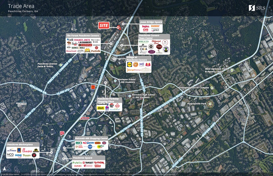 - Signalized corner location with excellent visibility and frontage along Peachtree Parkway and E Jones Bridge Road