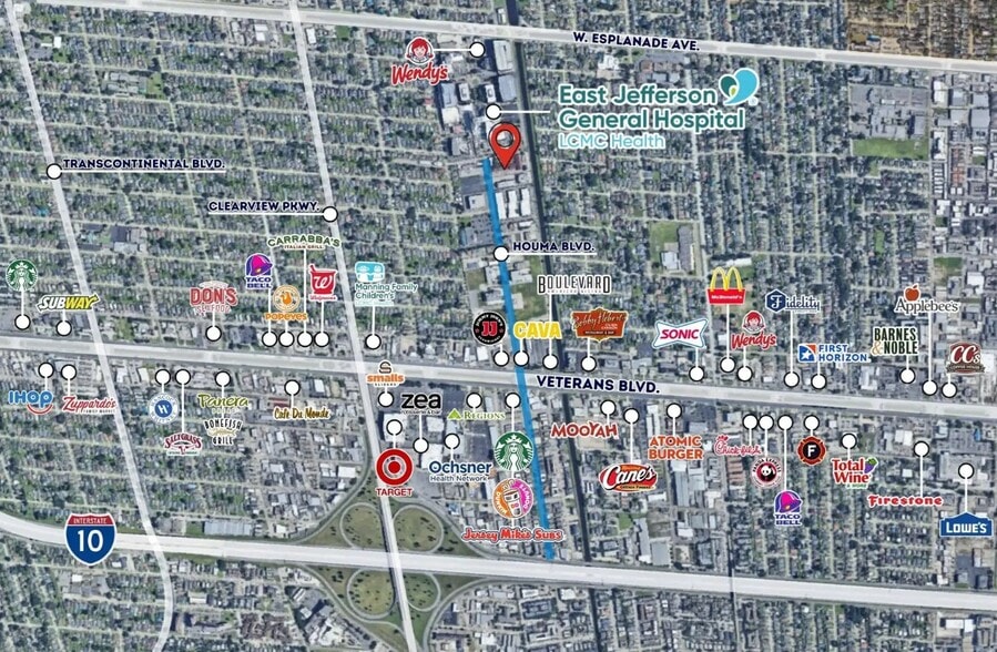 This 4,635 sf suite, comprised of 3,095 sf of medical clinic space and 1,540 sf of office space, is ideally situated on Doctor’s Row in Metairie, LA, just steps from East Jefferson General Hospital and surrounded by a well-established network of medical practices. The suite includes: Waiting room Six exam rooms Two bathrooms One office/break room One consult/draw room Three upstairs offices with storage area With prime visibility, generous parking, elevator access, and proximity to a thriving healthcare community, this property is perfectly suited for a variety of medical specialties.