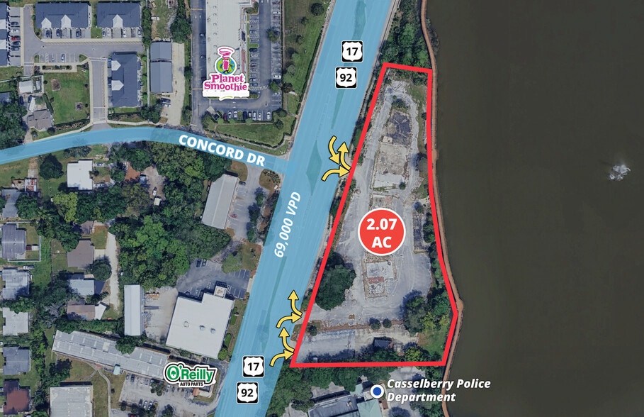 • High-Visibility Location: Commercial pad available at a signalized intersection on US Hwy 17-92, a major retail corridor with strong traffic counts. • Ideal for Retail & QSR: Perfect for drive-thru restaurants, retail, medical, or service-oriented businesses looking to capitalize on high exposure. • Strong Surrounding Demographics: Densely populated area with excellent consumer spending potential and a mix of national and local retailers nearby. • Easy Access & Connectivity: Convenient ingress/egress from US Hwy 17-92 & Concord Dr, with proximity to SR 436 and major commuter routes. • Flexible Development Opportunities: Ground lease or build-to-suit options available to accommodate a variety of business needs.