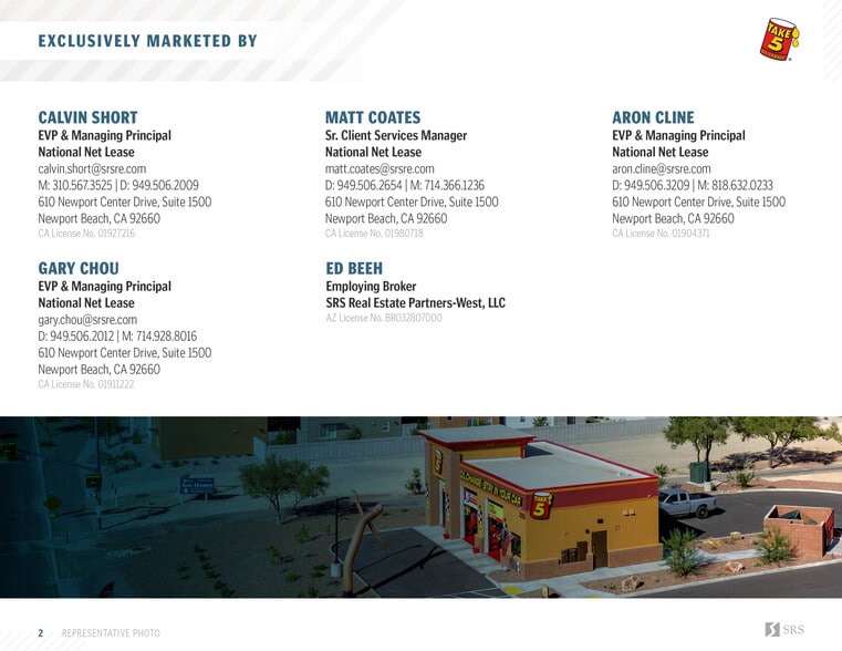SRS Real Estate Partners–West, LLC is pleased to offer the opportunity to acquire the fee simple interest (land and building ownership) in an absolute NNN leased Take 5 Oil Change investment property located at 3995 E. 22nd Street, Tucson, Arizona. The tenant will sign a brand-new, 15-year NNN lease with 10% rental increases every 5 years throughout the initial term and option periods at the close of escrow. The lease will be absolute NNN, requiring zero landlord responsibilities, making it an ideal, management-free investment opportunity for a passive investor.