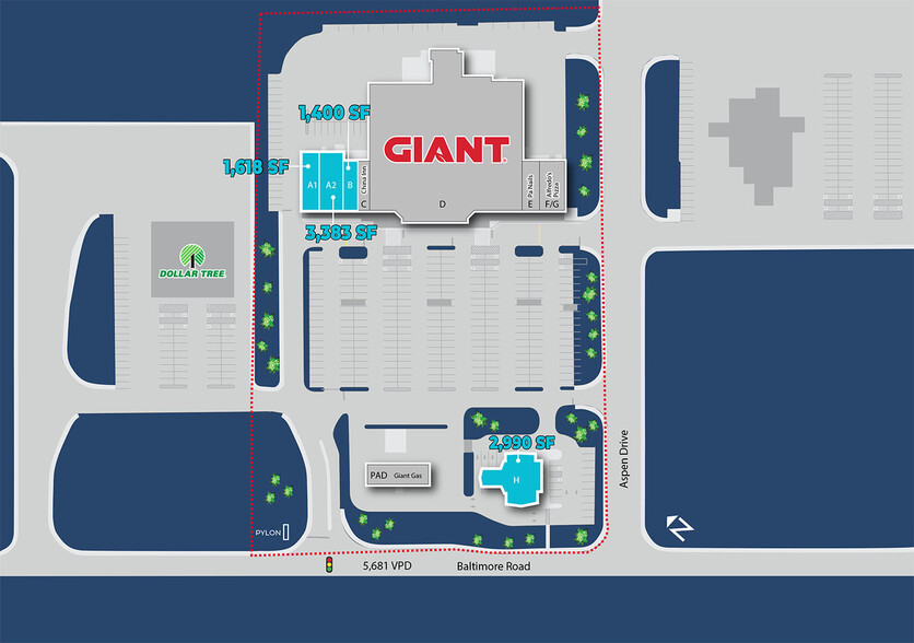 - Co-tenancy with national brands including Dollar Tree and Giant Fuel.
