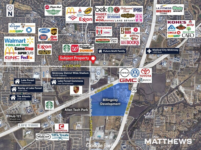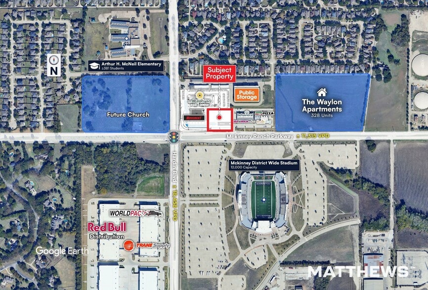 - Excellent visibility with ±11,315 VPD on McKinney Ranch Pkwy and ±18,458 VPD on Hardin Blvd.