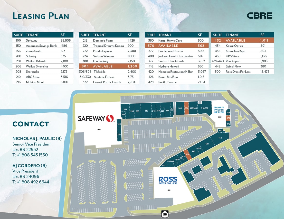 - Excellent visibility and easy access via Kuhio Highway (30,700 VPD)