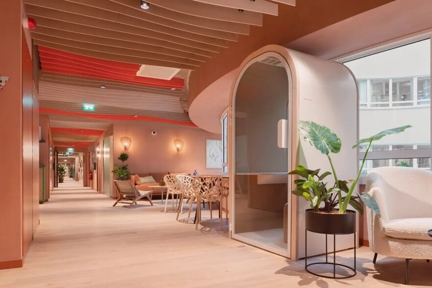 - Espaces communs variés : 9 salles de réunion, 6 phone booths