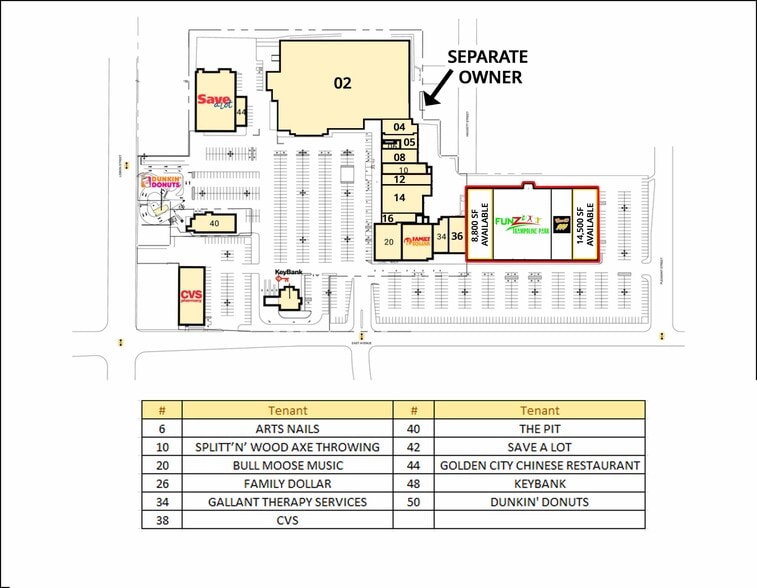 Join Fun-Z Trampoline Park, Family Dollar, Save A Lot, Dunkin', CVS, Aaron's, Golden City (Chinese Restaurant), Splittin' Wood Axe Throwing, Sea40 Japanese Cuisine, and more!
