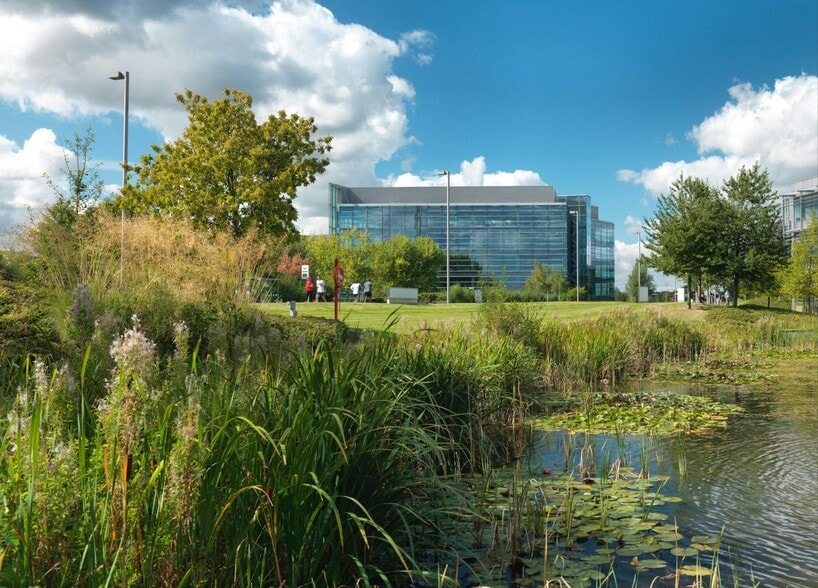 A stylish headquarters building with feature glass elevations adjacent to the M4 motorway for outstanding prominence. Large, flexible floor plates and maximum natural light create an exceptional working environment.