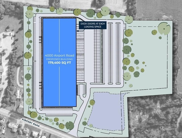 Proposed 179,400 SF distribution center featuring 25 dock-high doors and 2 drive-in bays, ideal for regional logistics, bulk distribution, and high-throughput operations.