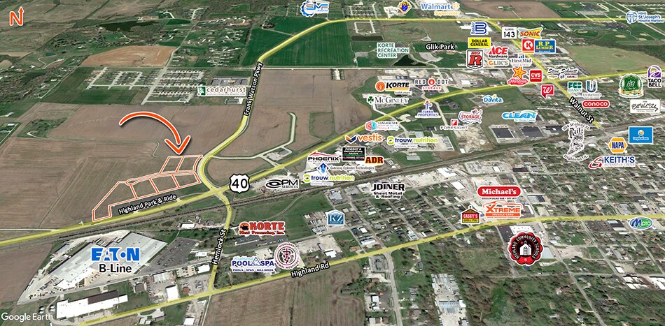 1.33-acre shovel-ready lot in Highland’s industrial corridor. All utilities in place and zoned industrial. Located near major employers and retail amenities with easy access to Route 40 and I-70. Incentives available for development.