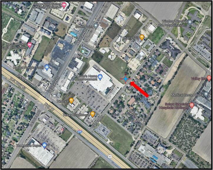 Adjacent, soon to be developed, Town Place Suites by Marriott. Valley Baptist Medical Center, UT RGV Regional Academic Health Center, VA Health Care Center and numerous medical facilities and medical practices are nearby. In the vicinity of various retailers in Harlingen Plaza. The 2022 traffic counts are 37,390 vehicles per day on Ed Carey Dr. and 96,777 vehicles per day on I-69E. Excellent expressway accessibility.