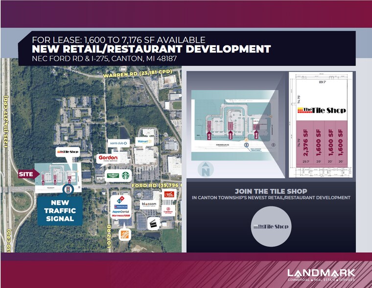 - Available space is positioned adjacent to the Tile Shop and two proposed drive-thru sites