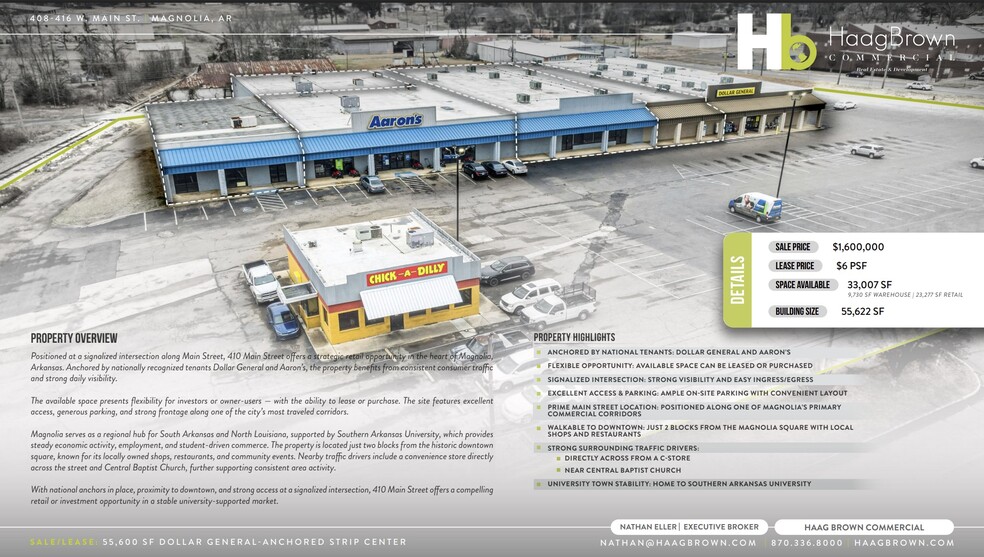 402-412 W Main St 55,000 SF 100% Leased Retail Building Magnolia, AR 71753 $2,171,200 CAD ($39.48 CAD/SF)
