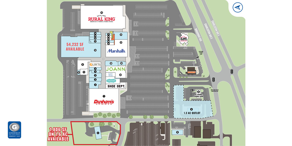 - Located across from the Cross County Mall, anchored by Rural King, Marshalls, JOANN, and Dunham’s Sports