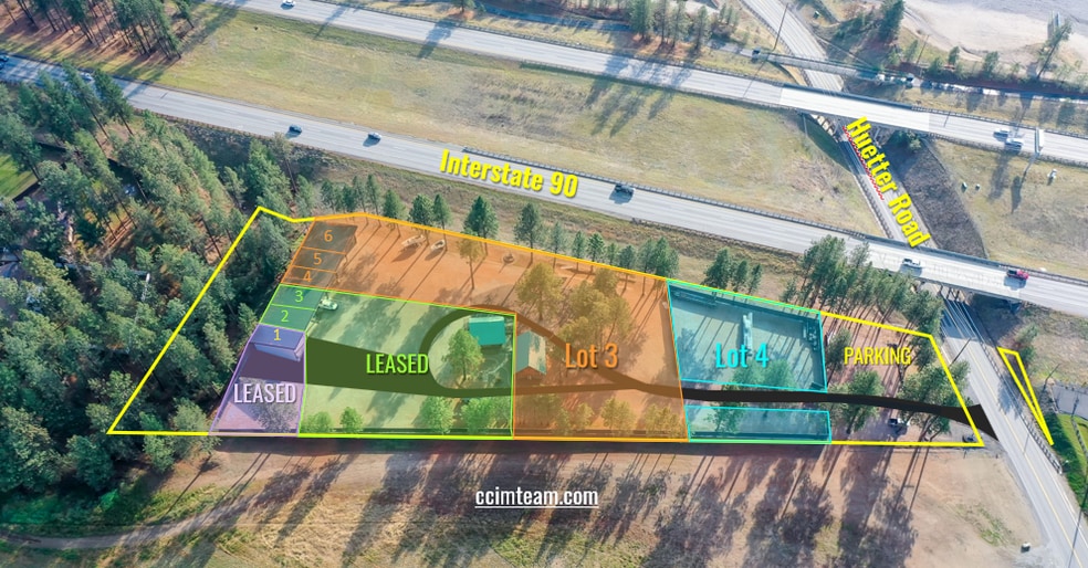 Extremely high visibility property for lease just off Huetter Road with 700 feet of frontage on Interstate 90 with traffic counts of 59,000 cars per day. Property has an asphalt driveway. Property is fully fenced with a security gate. Approx. 300 feet of fencing doesn’t have privacy slats, for I-90 visibility. The property owner is currently working on a zone change to Commercial with the County, but many uses can be used with the current Conditional Use Permit.