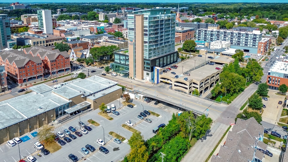 The restaurant and bowling alley in The Chauncey is a two-level, 12-lane entertainment venue with an arcade, bar, and significant lower-level street frontage. Purpose-built acoustic and vibration controls support its operation within the mixed-use tower.