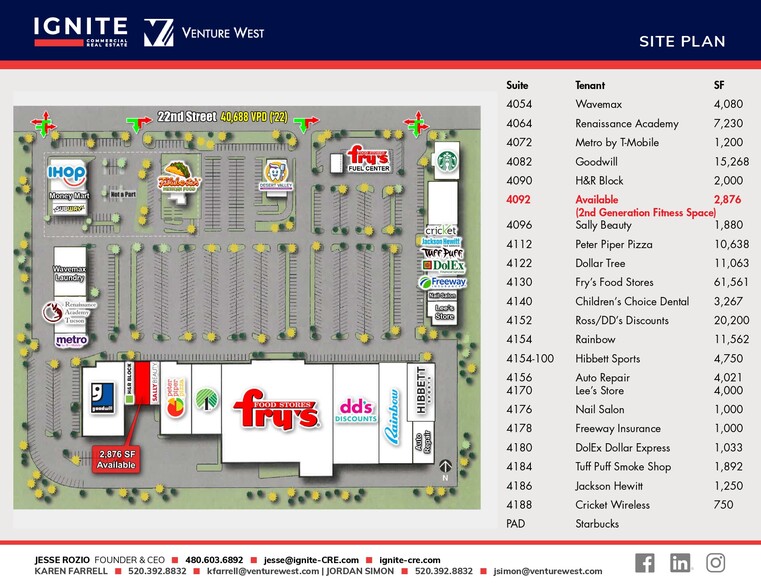 | Total Space Available | 2,876 SF | Frontage | 985’ on E 22nd St |