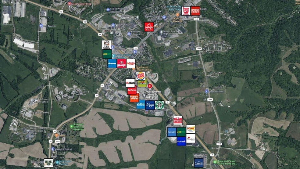 Maysville Market Square also includes Kroger Market Place, Dunham’s Sports, Shoe Sensation, AT&T, Ross Dress Barn, GNC, Burger King, Taco Bell, and Fazolis plus an adjacent Hampton Inn and Tractor Supply.