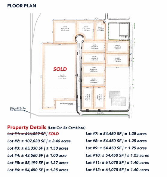 Esmeralda Commerce Park is a brand new Commerce Park with 11 individual lots, available for sale individually or combined. Lot sizes range from approximately 1.00 to 2.46 acres, with a total available land 14.03 acres.