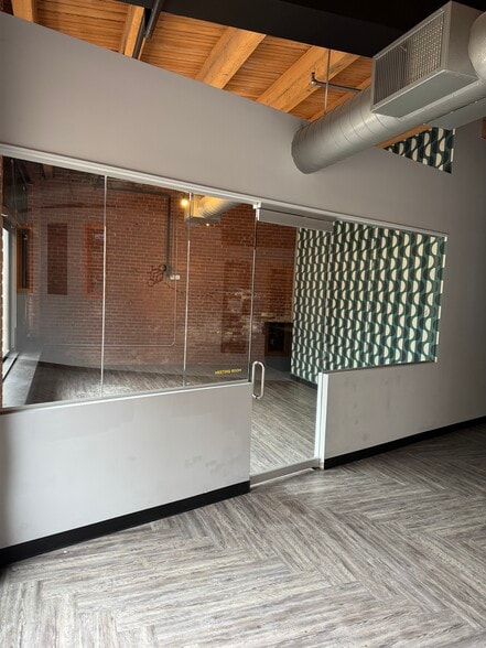 Discover an exceptional office opportunity in the heart of Kansas City’s vibrant River Market neighborhood. This expansive 5,000 SF first-floor suite blends historic character with modern functionality, featuring exposed brick, wooden ceiling beams, and oversized windows that flood the space with natural light. The layout includes multiple private offices, a large glass-enclosed conference room, and a welcoming kitchenette, offering an ideal environment for both collaboration and productivity. Given its open frontage, high visibility, and strong pedestrian activity along Delaware Street and the streetcar line, the space could also be easily adapted for retail or food-and-beverage concepts. With ADA accessibility, nearby parking options, and a prime location steps from coffee, dining, and shopping, this property provides unmatched convenience. It’s the perfect setting for businesses seeking creativity, visibility, and connectivity in one of the city’s most dynamic districts.