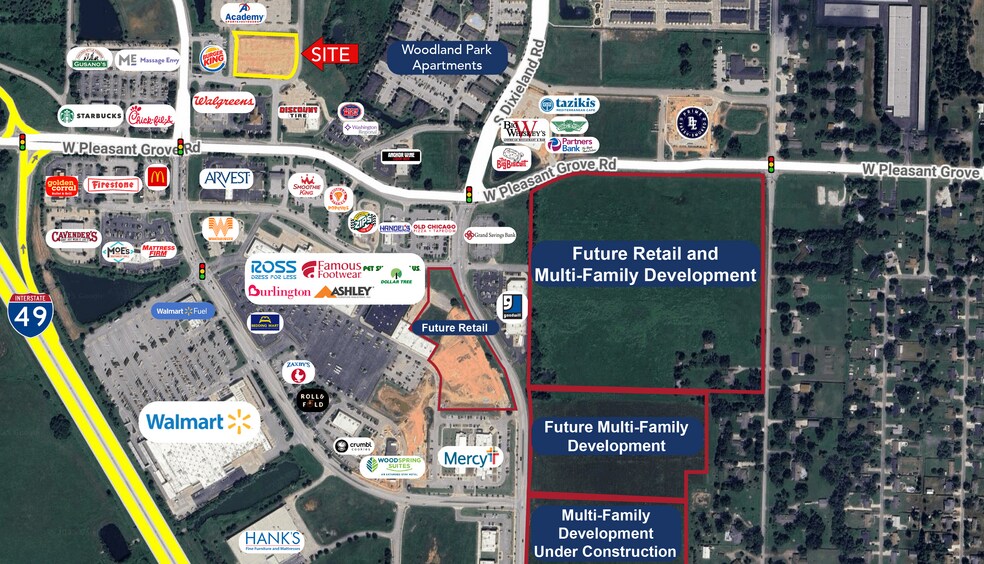 • New Construction retail building • One of the fastest growing retail areas in NW Arkansas • Several new multifamily developments within close proximity • JB Hunt Headquarters is just south of the trade area • Great Visibility • Ample Parking • Drive-Thru Available