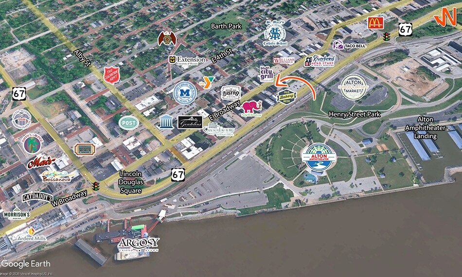 - Prime downtown Alton location within walking distance of restaurants, amenities, Riverfront Park, Argosy Casino, and the Alton Amphitheater