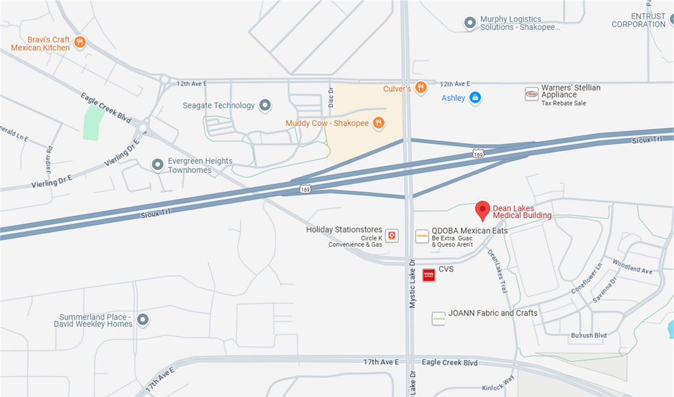 Dean Lakes Medical Building is conveniently located just off Hwy 169 in Shakopee and is home to Allina Health Dean Lakes Clinic, Twin Cities Eye Consultants, and others. The Building is just a 7 minute drive from St. Francis Medical Center, making it a great choice for the independent practices, particularly with the limited amount of medical office space available in Shakopee. Shakopee is a growing community and St. Francis Medical Center recently completed renovations and added a Surgery Center to accommodate the community's healthcare needs. One space remaining - spec suite available to be built-out and there is still time to customize to fit your practice. Great opportunity for single provider practice, internal medicine, family, behavioral health, others.
