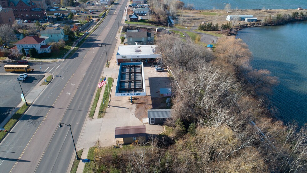 PRIME LOCATION and just steps away from Lake Superior on HWY 2 in the middle of downtown Ashland! This is it! Just under a half acre+/- perched atop the lakefront trail with sweeping views of Chequamegon Bay. Catch the views and all the commuters. Bring your business ideas and create a space you and your clients easily access and look forward to coming to. The Bay View Pawn Shop is closing. Seller will consider land contract with acceptable down payment, sellers credit and approval.
