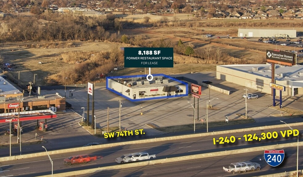 Position your concept for success at 421 W I-240 Service Road, a premier restaurant space offering unbeatable freeway visibility and signage opportunities. Located on a 1.25-acre parcel with 65 surface parking spaces, this property sits in a high-traffic corridor with over 116,000 vehicles daily. Ideal for operators seeking a strong presence in South Oklahoma City’s most prominent retail destination.