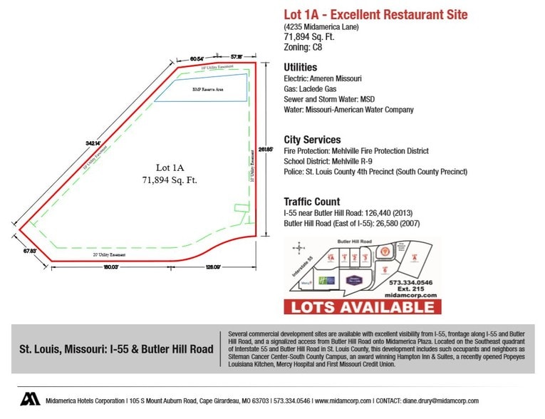 Located just off Interstate 55 and Butler Hill Road, this high visibility area is easily accessible .In close proximity to first class award-winning hospitality, medical facilities, restaurants and hotels.