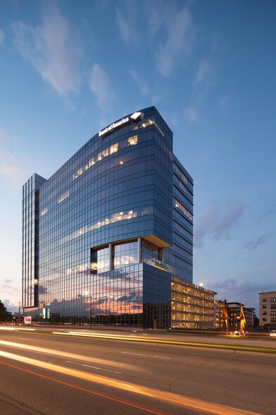 Soaring 18 stories tall, Bank of America Tower is a 300,000-square-foot, mixed-use Class A office building in North Hills, a flourishing development in midtown Raleigh that offers a unique combination of places to live, work, shop, play and stay. Bank of America Tower features 10 levels of office space above 7 levels of structured parking and active first floor restaurant space with The Capital Grille and Stir. The building offers a prominent location along Six Forks Road and I-440. Within walking distance from the building, you’ll find a multitude of retail and restaurant options at North Hills.