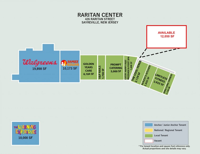 Prime Shopping Center located at busy intersection across from new Park and Ride. Anchored by Walgreens w/ drive-thru and Family Dollar Store. 10,000 SF pad site (The Learning Experience). GLA: 74,061 SF. Parking: 385 spaces. The property is situated at the signalized intersection of Raritan Street and Main Street in Sayreville New Jersey. “Easy on” access from exit 124 of the Garden State Parkway. New, Large Pylon Sign. MAJOR RENOVATION RECENTLY COMPLETED.