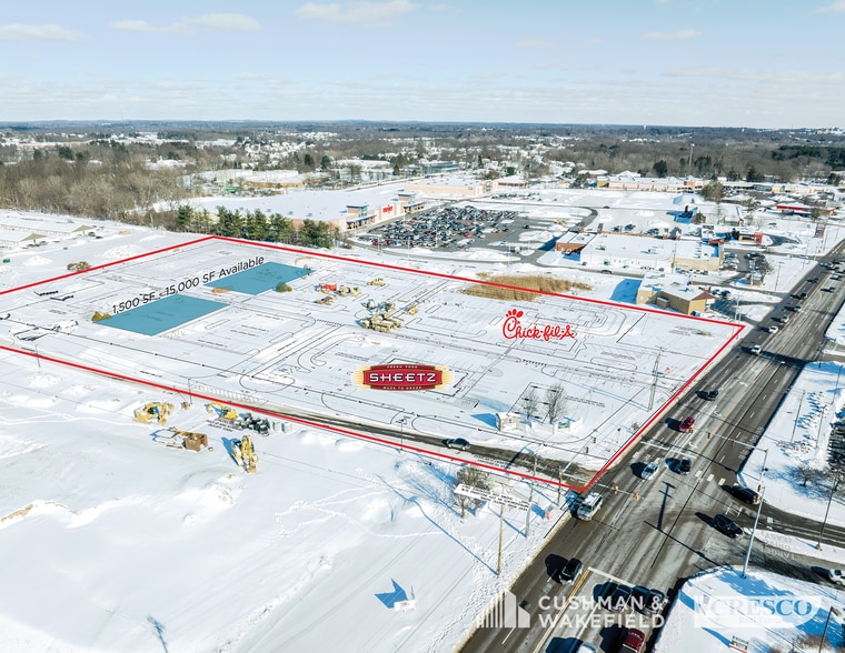 Proposed multi-tenant retail, medical, or office space is available for lease from 1,500 SF to 15,000 SF. The owner is also willing to explore ground lease and/or build-to-suit options. The property offers flexible delivery condition and is part of a larger development including new Chick-fil-A and Sheetz locations. Prominent visibility from Kent Road with over 17,000 VPD and is located in an extremely active retail trade area conveniently between Stow and Kent. Neighboring retailers include Meijer, Target, Dick’s Sporting Goods, Hobby Lobby, Giant Eagle, Kohl’s, and TJ Maxx, among others. The site is less than 3 miles from Kent State University Main Campus with over 25,000 students, and within a 10-minute drive-time with over 48,000 residents, an average household income over $110,000, and consumer expenditures in excess of $2.13 billion.
