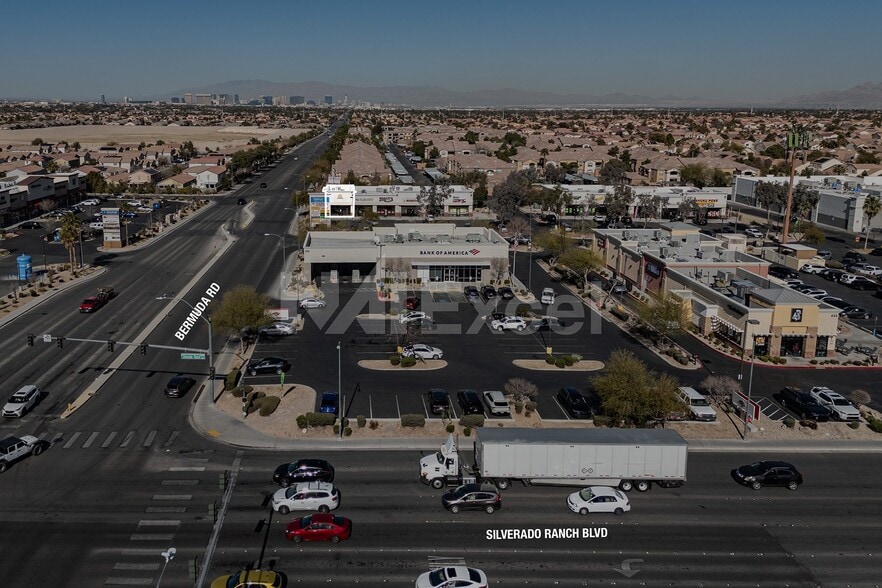 End-cap retail suite of approximately 1,447 SF located at the entrance to a high-traffic neighborhood center along Silverado Ranch Blvd with strong frontage and visibility from Bermuda Road. The space is suited for restaurant or food-service users and features a gated patio, existing kitchen build-out, and efficient interior layout. Surrounded by established national and regional tenants including Walmart Neighborhood Market, Bank of America, Wells Fargo, UPS Store, and Rosati’s Pizza, the property benefits from reliable foot and vehicle traffic, a dense residential trade area, and excellent connectivity throughout South Las Vegas.