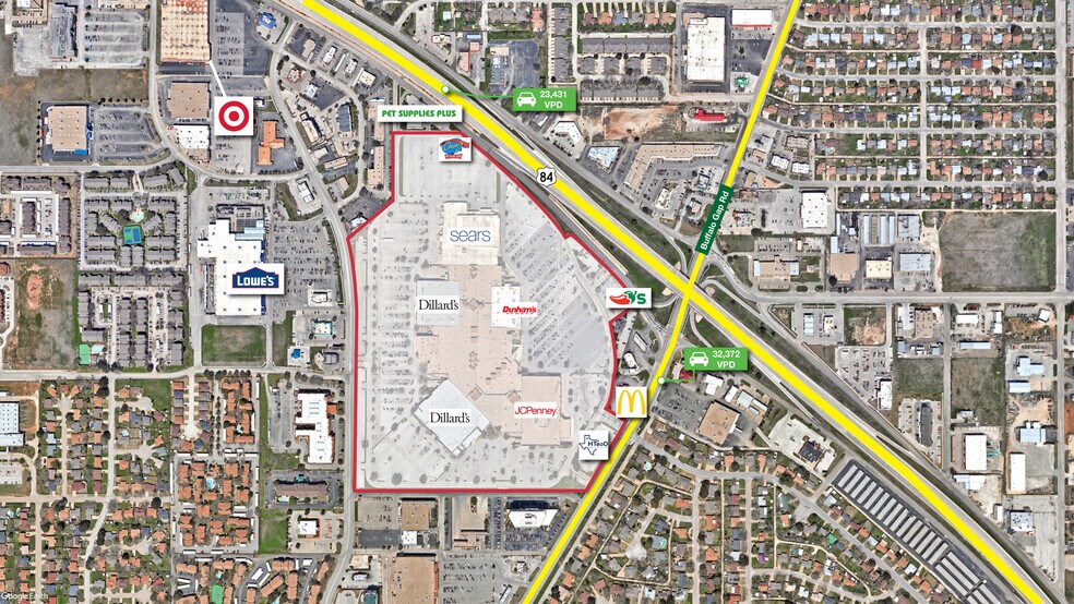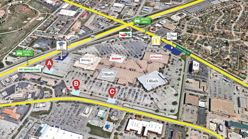 The site has excellent visibility and access to the over 50,000 combined vehicles driving past the mall daily on HWY 84 & Buffalo Gap Road.