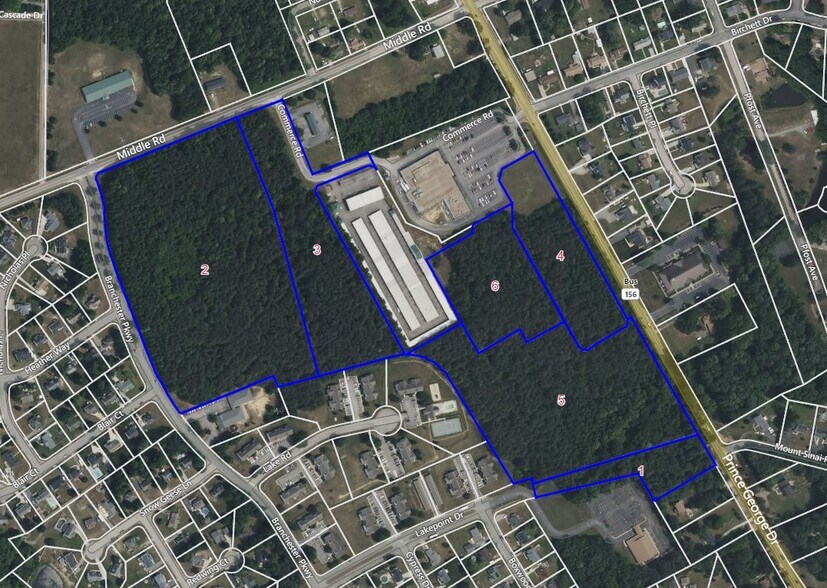 One of the best undeveloped commercial properties in Prince George County, adjacent to a Food Lion anchored shopping center. The parcels along Middle Road are designated for multifamily residential in the county's comprehensive plan. Parcels can be sold individually or together. Property is located roughly 15 minutes south of the Meadowville Technology Park and the future LEGO Group Project.