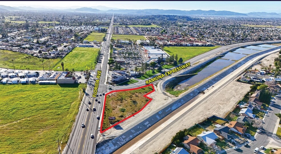 Vacant land. 1.13 acres located at the northeast corner of Florida Avenue and the Ramona Expressway.