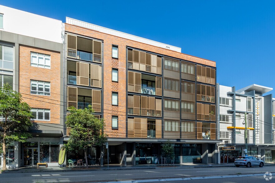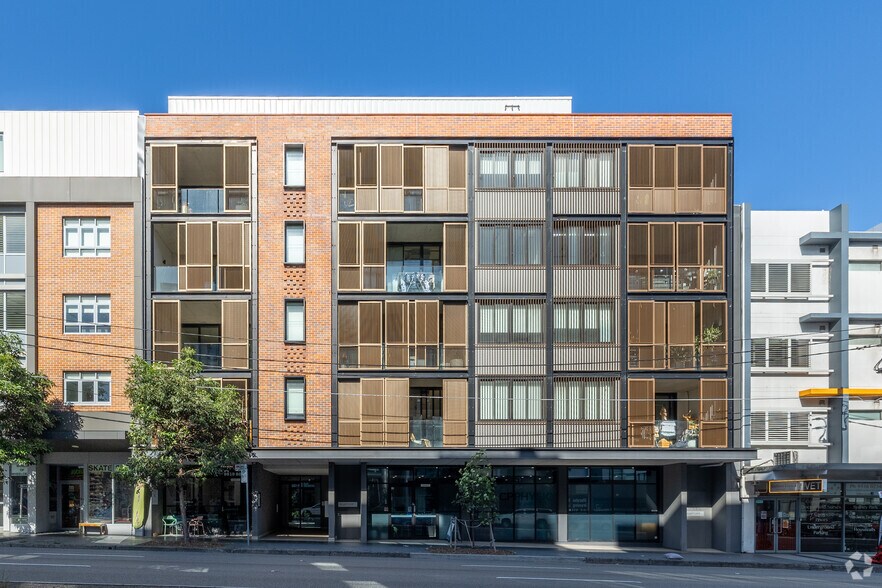 The property is located at 44-46 Princes Highway, St Peters, within an urban area undergoing significant renewal. The site has dual frontage, with Princes Highway to the west and Barwon Park Road to the east. Surrounding development to the north, west, and south consists of mixed-use buildings ranging from four to seven storeys. The current development comprises 40 residential apartments of varying sizes and configurations, including adaptable units. The design incorporates measures to optimize privacy between public and private areas within the dwellings. Retail and café spaces are provided at street level on both Princes Highway and Barwon Park Road frontages to activate the streetscape. The design approach retained and revitalized the existing warehouse building on Barwon Park Road, integrating it with a contemporary addition positioned behind and above. This strategy preserved elements of the site’s historical character while introducing modern architectural features. The Princes Highway façade incorporates industrial-inspired materials and operable louvres for solar control and privacy. The completed development is a mixed-use building combining residential apartments with ground-floor retail and café spaces, designed to integrate with the surrounding urban context while maintaining references to the site’s historical industrial character.