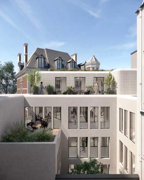 Near the Villiers metro station, Alex Bolton offers for rent a brand-new independent building with a total area of 655 m², featuring 2 private outdoor spaces. The property has minimal load-bearing constraints and offers great flexibility for layout. The floors are practical and can be easily partitioned. Available immediately. - Character building with a strong identity - Ambitious architectural project combining modernity with respect for the old - Delivered new and certified - BREEAM "Very Good" environmental certifications - Outdoor spaces: courtyard on the ground floor and terraces on the 3rd and 4th floors - ADA-compliant access - Functional and modular spaces - New, state-of-the-art technical equipment meeting user requirements - Air handling unit - 2 private terraces Independent building Ground floor area: 162.9 m²