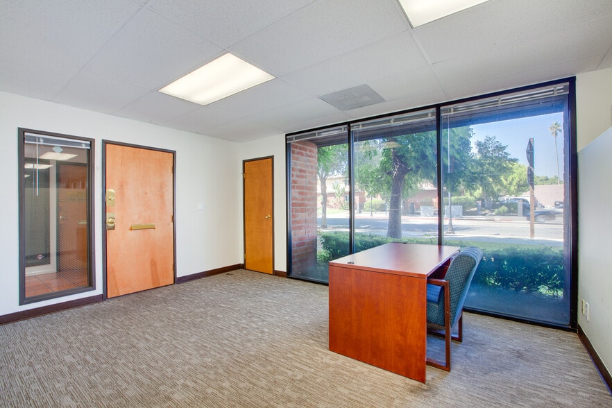 This NEWLY RENOVATED OFFICE SUITE is located on the GROUND LEVEL of a BOUTIQUE building in GLENDALE with FLOOR TO CEILING WINDOWS for abundant light and MOUNTAIN VIEWS! Tons of parking - TWO COVERED PARKING SPOTS and THREE UNCOVERED SPACES CENTRAL LOCATION right off the 5 and 134 FREEWAYS! ALL UTILITIES AND JANITORIAL INCLUDED!! There are TWO EXECUTIVE OFFICES, a KITCHENETTE, computer room, a CONFERENCE AREA and 3 separate storage closets. Equipped with numerous DESKS and CHAIRS.