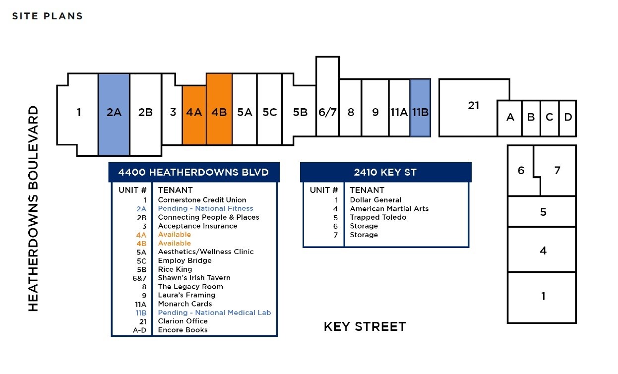- Neighboring tenants include: Dollar General, Trapped Toledo, D1 Training, Labcorp