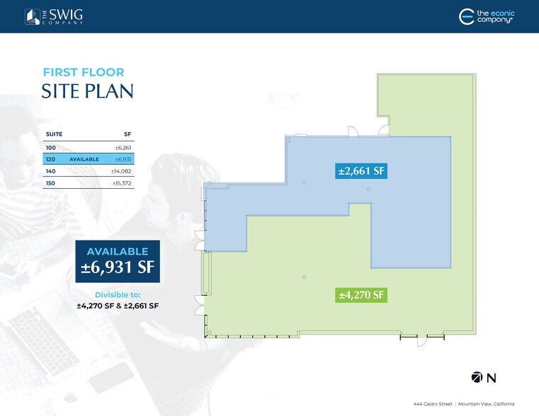 Elevated glass facade fronting Castro St. Large public parking lot in rear of building. Neighboring best in class national retailers Sweetgreen and Peet’s Coffee. Large outdoor Patio Area.