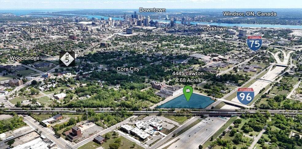 4.68-Acre Lot of Vacant Land. All offers will be considered! Corner of Buchanna Street and Lawton Street 4.68 acres of industrial land located at 4445 Lawton St., Detroit, Michigan, 48208. Sits off of Interstate 96, with 112,483 vehicles per day. Half a mile from Interstate 94, with 157,000 vehicles per day. Close to Interstate 75, with 83,991 vehicles per day. Close to M-10, with 82,217 vehicles per day. Borders an active railroad line, for rail access available for sale or BTS. 7.6 miles from Detroit City Airport. 20 miles from Detroit Metropolitan Airport (DTW). 4 miles from Downtown Detroit. 4 miles from Detroit-Windsor Tunnel, with proximity to Canada. 3.1 miles from the Ambassador Bridge.