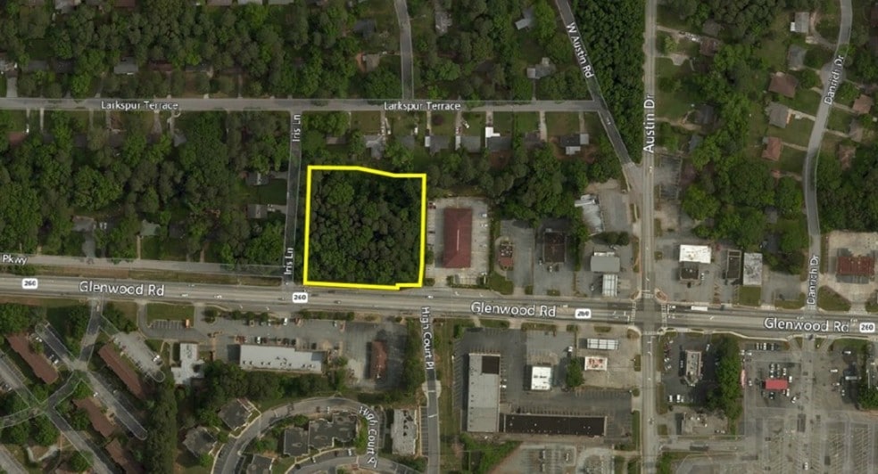 +/- 1.9 acres on the corner of Glenwood Road and Iris Lane .3 miles from I285 interchange. Glenwood overpass and exit to I285 is expanding to 6 lanes and Glenwood will be widened inside the perimeter. Appx 290' frontage on both Glenwood and Iris.