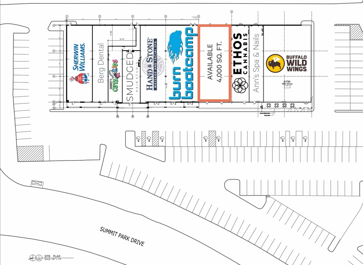 A 4,000-square-foot second-generation restaurant space is available for lease at Summit Park Shoppes. This space offers an efficient layout for food service operators and is surrounded by strong co-tenancy, including popular dining and retail brands. The location provides excellent exposure and easy access for customers in a thriving retail corridor.