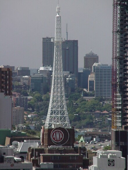 - Heritage-listed Art Deco building featuring the iconic AWA radio transmission tower.