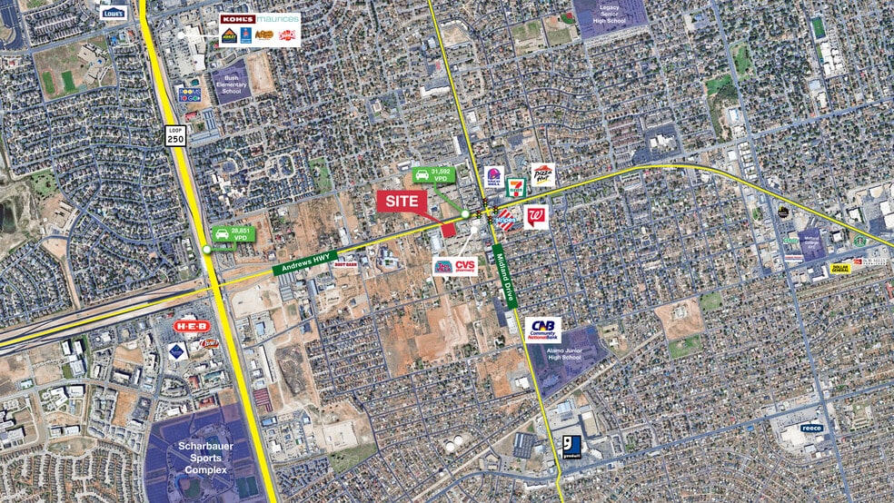 This planned, new-construction retail center offers premier visibility along Andrews Highway in Midland, TX, with exposure to more than 30,000 vehicles per day. The project will feature modern retail spaces complemented by a highly desirable end-cap with drive-thru capability, ideal for quick-service restaurant or service-oriented users. Strategically located with easy access to West Loop 250, the site sits directly in the path of Midland’s continued growth and development, providing strong traffic counts, excellent accessibility, and long-term upside for retailers seeking a high-profile presence.