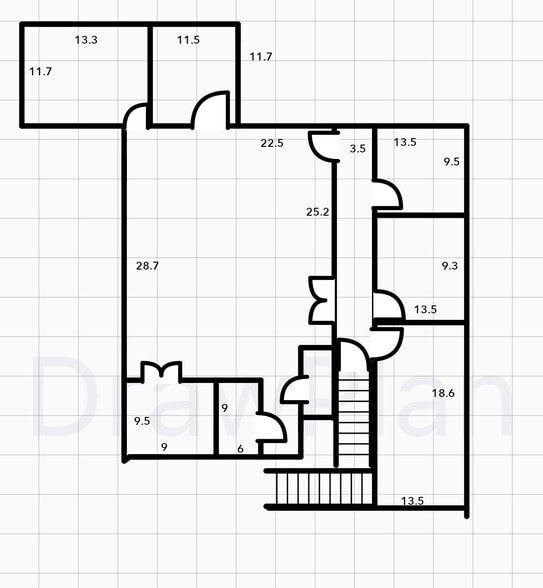 The First-floor office space in this building. Large open area with several private offices around the perimeter.