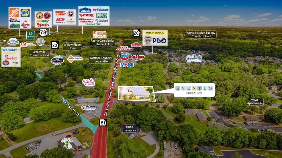 - Located just off Lawrenceville Hwy, which sees over 19,500 VPD, Atlanta Hwy which sees over 44,400 VPD, and Conyers Rd, which sees over 13,406 VPD.