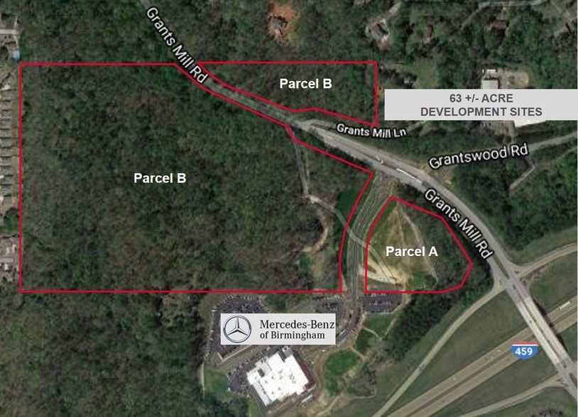 Parcel A is a retail site located on Grants Mill Road at I-459 adjacent to the new Mercedes-Benz of Birmingham. Sale Price: $2,500,000 Inquires accepted for Parcel B. Offers to be presented to Owner.