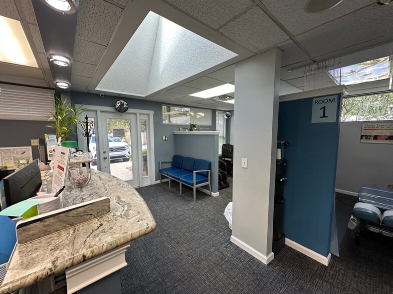 Suite 1101 is a prime corner suite with abundant natural light provided by skylights, high ceilings, and floor-to-ceiling windows. The suite features a reception desk, waiting area, 3 private offices, 3 exam rooms, breakroom, and an ADA-compliant restroom. One of the offices is currently configured as an X-ray room.